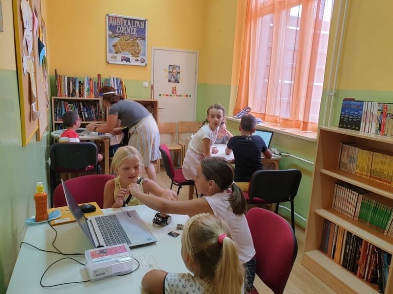 Održali smo prvu micro:bit radionicu ove godine. Na današnjoj radionici učili smo o micro:Maqueen; edukacijskom setu temeljenom na micro:bitu – savršena platforma... Održali smo prvu micro:bit radionicu ove godine. Na današnjoj radionici učili smo o micro:Maqueen; edukacijskom setu temeljenom na micro:bitu – savršena platforma za razvoj logičkog razmišljanja i brzo učenje grafičkog programiranja. Naučili smo mnogo korisnih stvari, a i zabavili se. Mali polaznici su tako brzo savladali gradivo da su na kraju osmišljavali sami svoje kôdove bez ikakvih pomagala. Nadamo se da će vam slike biti dovoljna motivacija da se priključite na sljedeće radionice. Sljedeća radionica održat će se u petak (21.8.) u 10h. #STEM #STEMrevolucija #microbit #microMaqueen #knjiznica #library